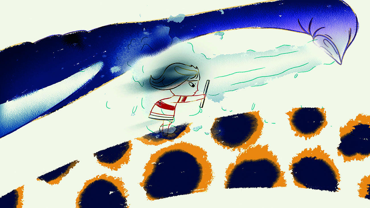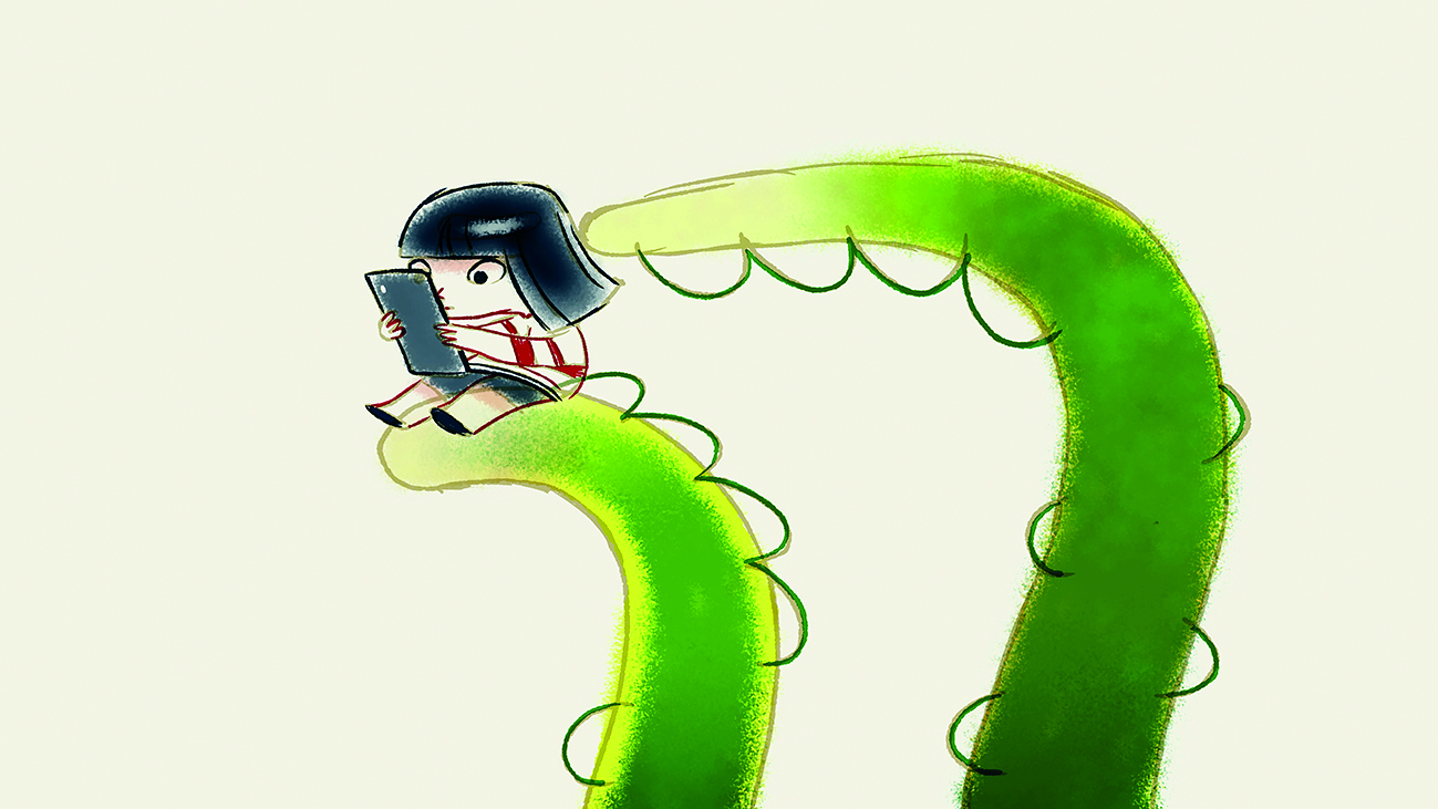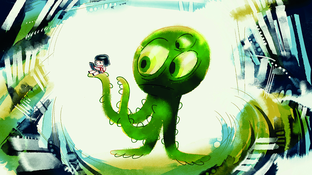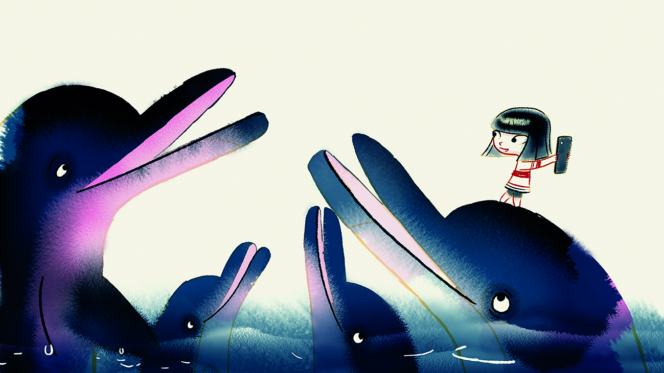 Ein Mädchen wandert durch die Stadt, über Felder, am Strand entlang – und schaut doch nur aufs Handy. Sie sieht nichts um sich herum und merkt auch nicht, wer mit ihr spielen will. Aber dann passiert etwas, und sie wendet sich wieder der Welt zu.