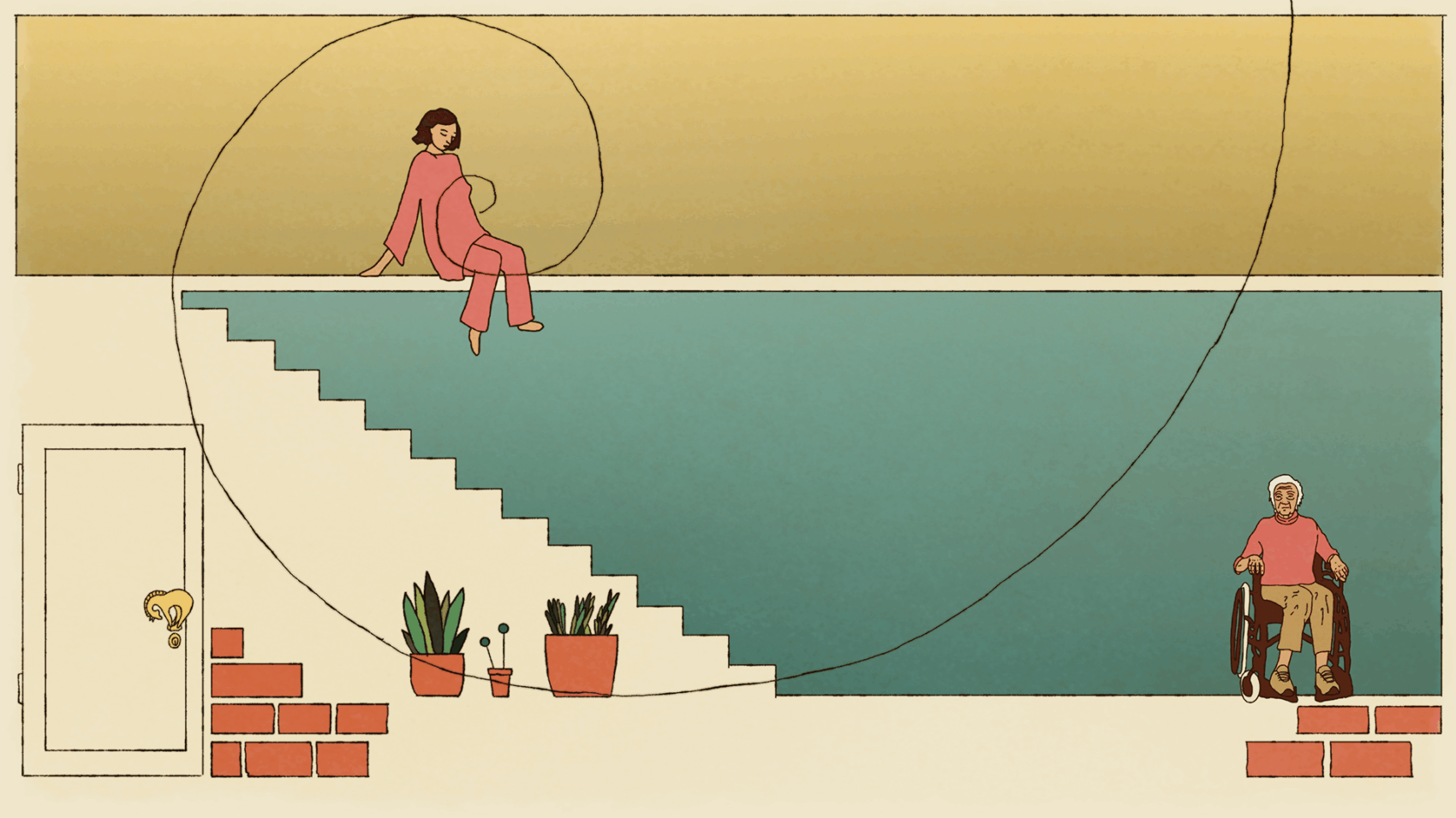 Eine spi­ral­för­mi­ge Recher­che über das eige­ne Altern, aus­ge­löst durch die Kon­fron­ta­ti­on mit der Hilf­lo­sig­keit einer fast hun­dert­jäh­ri­gen, allein­le­ben­den Nachbarin.